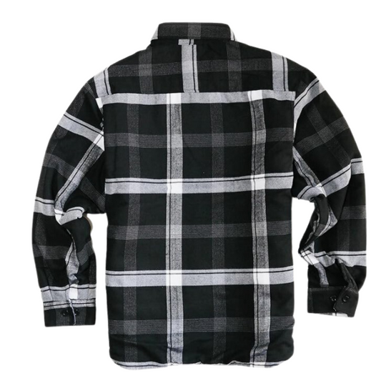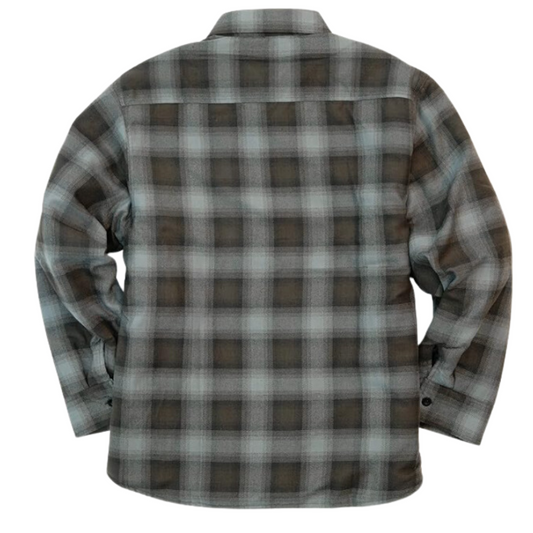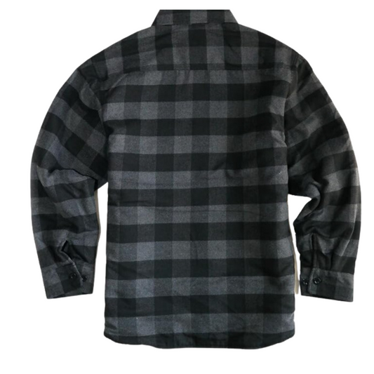 YAGO Men's Quilted Lining Button Up Plaid Flannel Jacket with Side Pockets Black/Gray B1