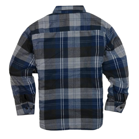 YAGO Men's Quilted Lining Button Up Plaid Flannel Jacket with Side Pockets Navy Grey A2