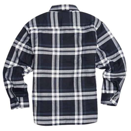 YAGO Men's Quilted Lining Button Up Plaid Flannel Jacket with Side Pocket Navy/White (J2)