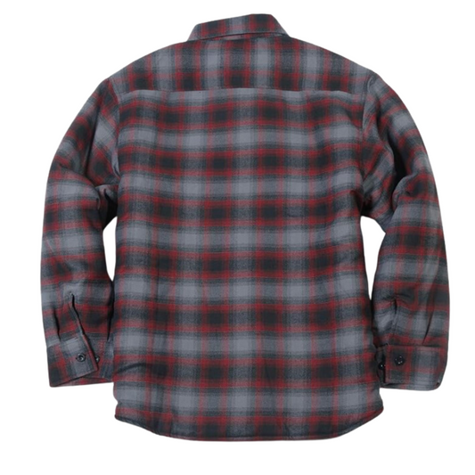 YAGO Men's Quilted Lining Button Up Plaid Flannel Jacket with Side POCKET Red Grey Ac7