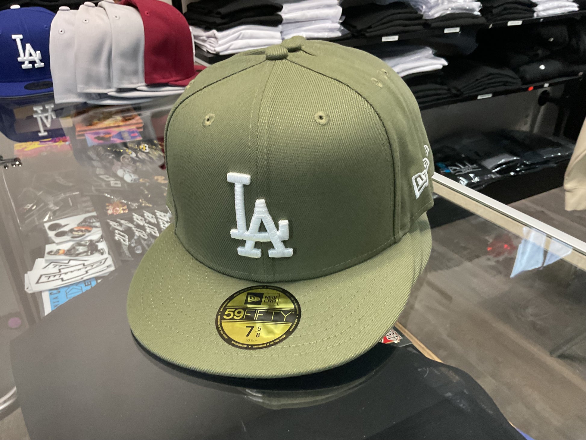 NEW ERA LOS ANGELES DODGERS OLIVE GREEN/WHITE FITTED HAT….